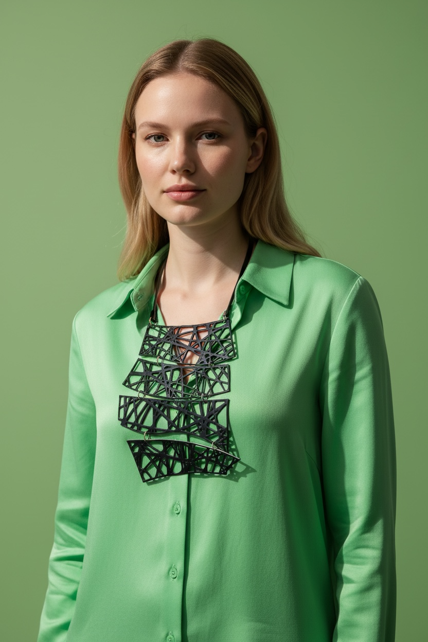 Questa collana è una creazione artigianale che unisce eleganza e innovazione. Realizzato in gomma di recupero
